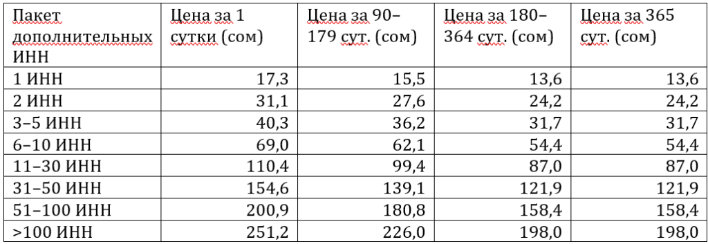 Уведомление об изменении стоимости пакетов на сервис «ЭСФ Кыргызстан»